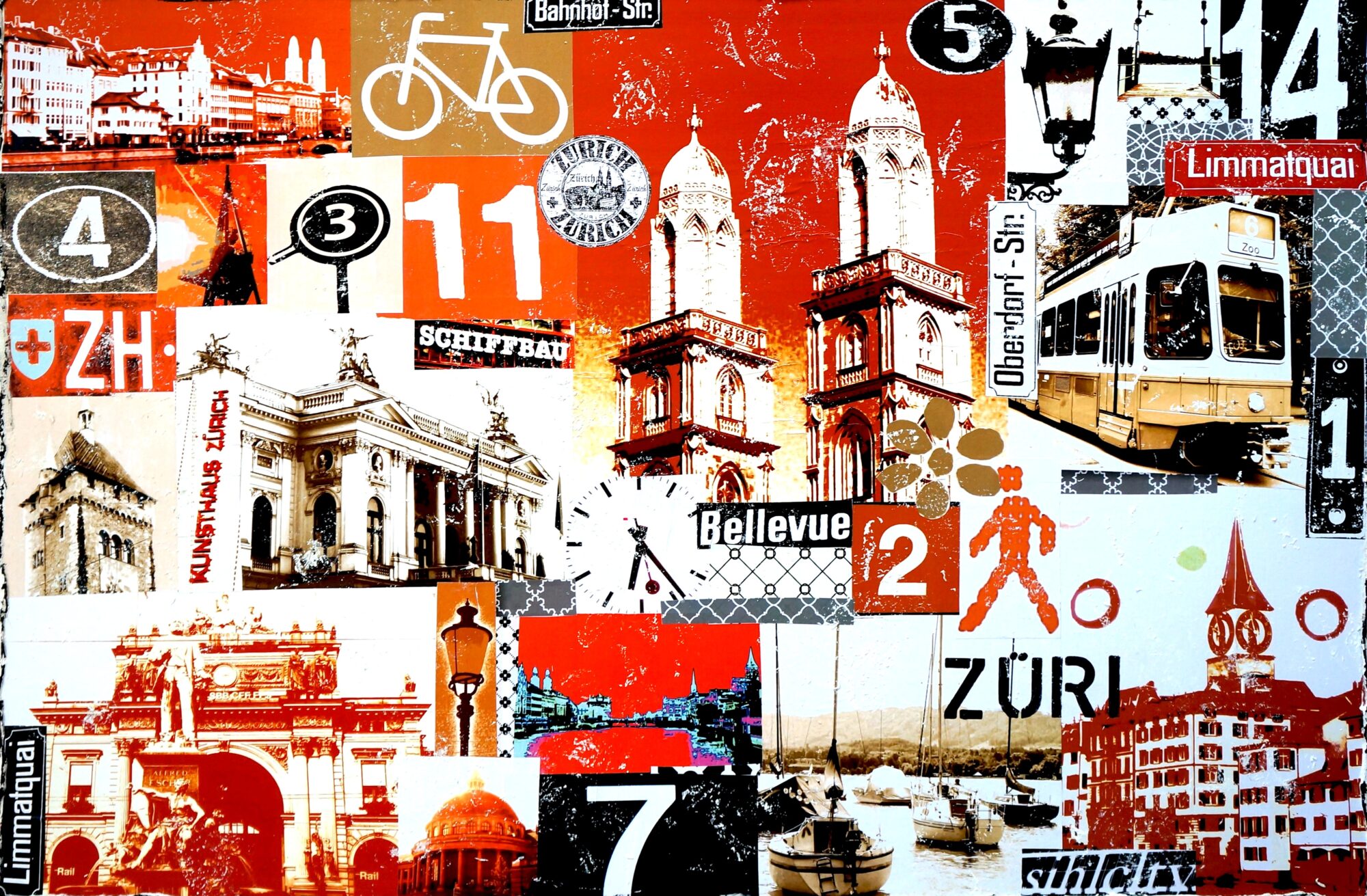 Meine Arbeiten sind eine Mischung aus Pop-Art, Collagen, Vintage sowie Acryl-Mischtechnik. Preislich liegen meine Bilder zwischen CHF 199.– (20 x 20 cm) und ca. CHF 1’900.– (100 x 100 cm).